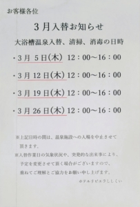 - 3月温泉入替えのお知らせ