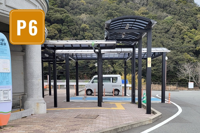 宿泊のお客様は宿泊者専用駐車場へ、日帰りのお客様は道の駅の駐車場へお停めください。