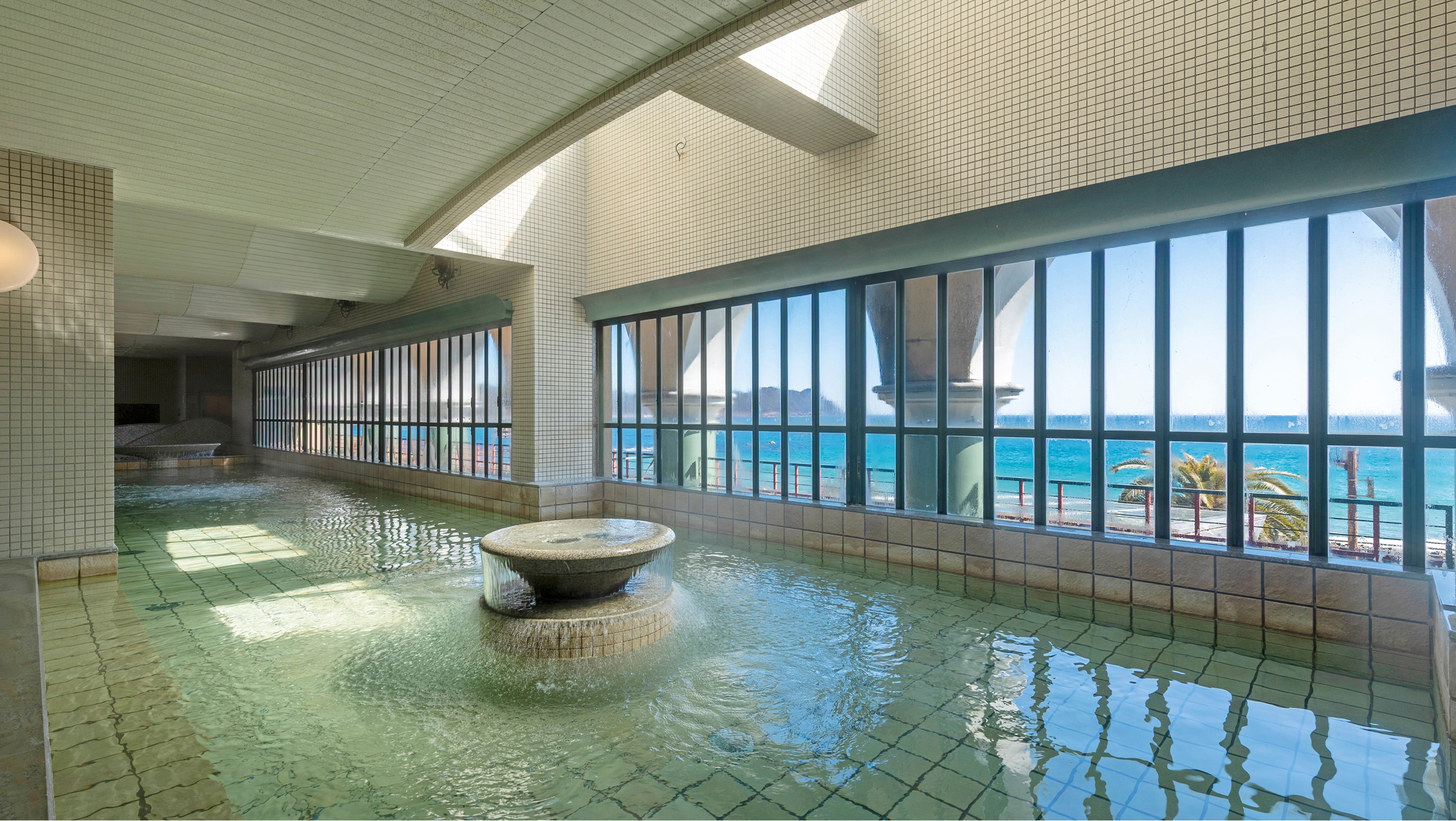 良質の温泉は地元の方からも愛され、旅の疲れを癒す贅沢な空間です。大きな窓からは雄大な太平洋を望みます。