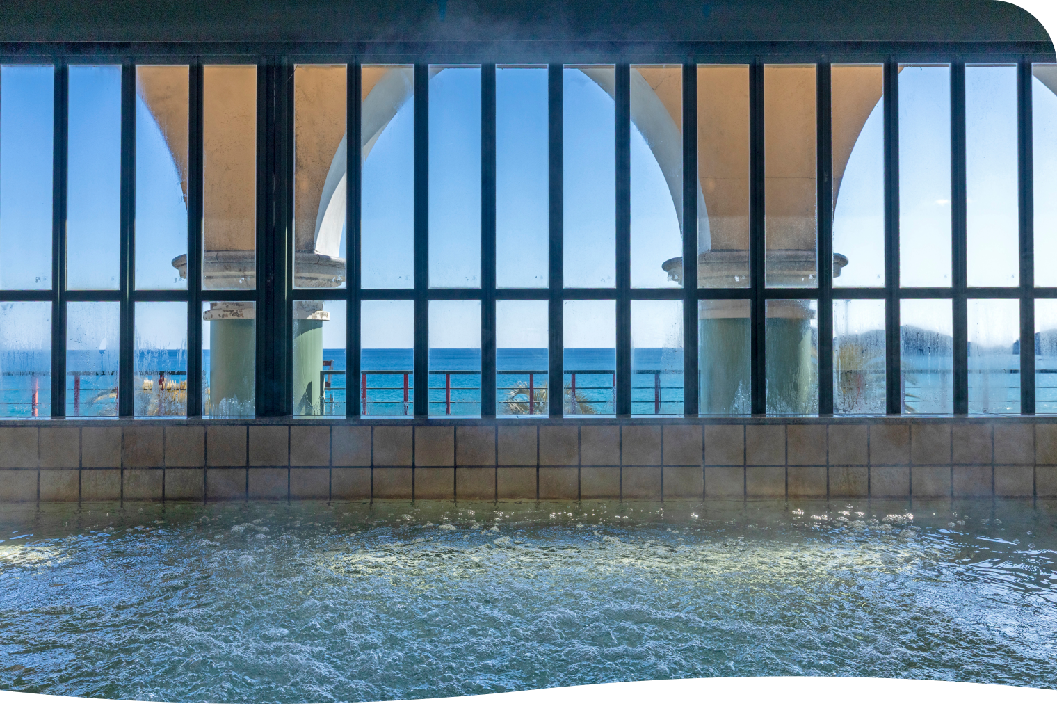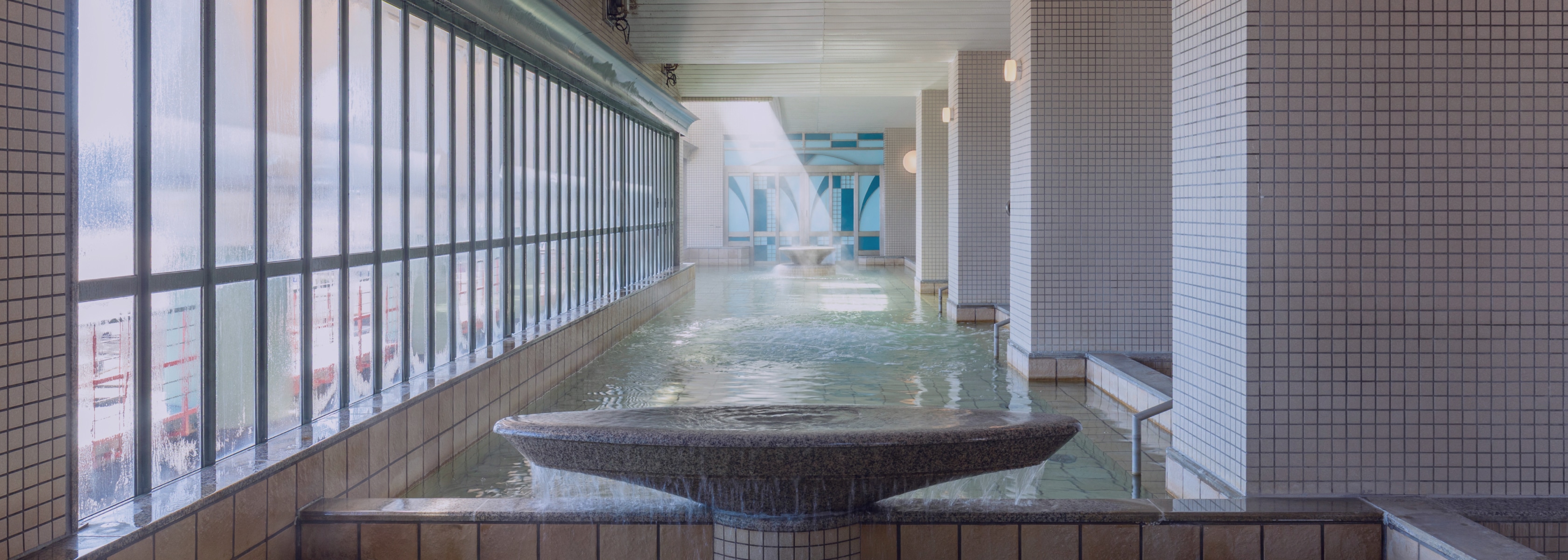 40mもの長さを誇る大浴場は、圧倒的な開放感。広々とした湯船が続くゆとりある空間で、周囲を気にせず身体をゆったり伸ばして心ゆくまで入浴を楽しめます。