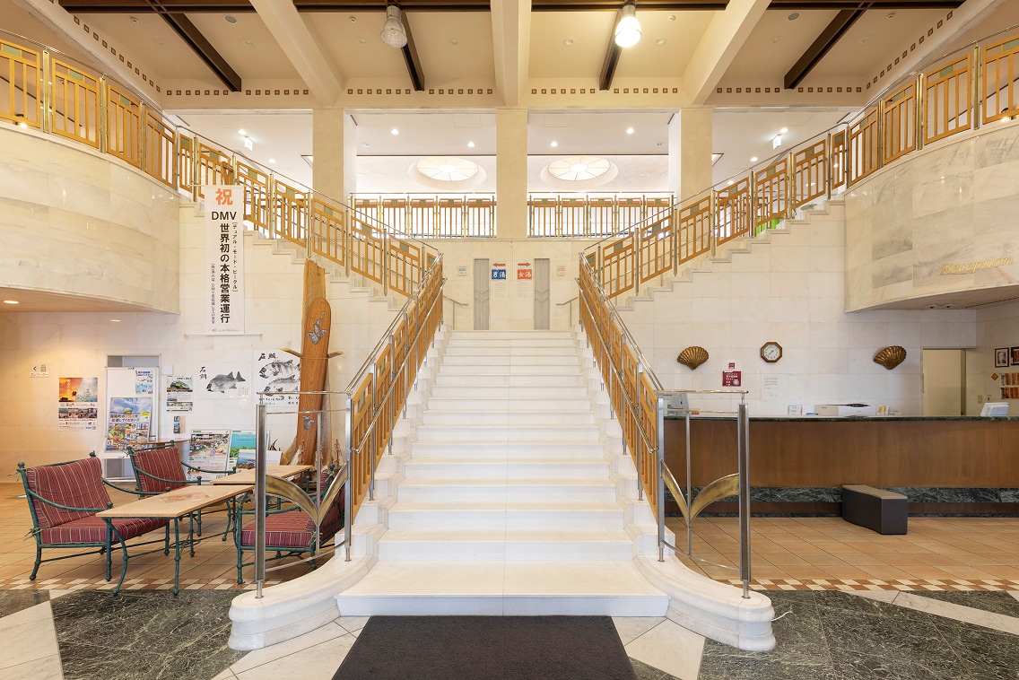 館内に足を踏み入れると、2階まで吹き抜けの開放感あふれるエントランスがお出迎えします。