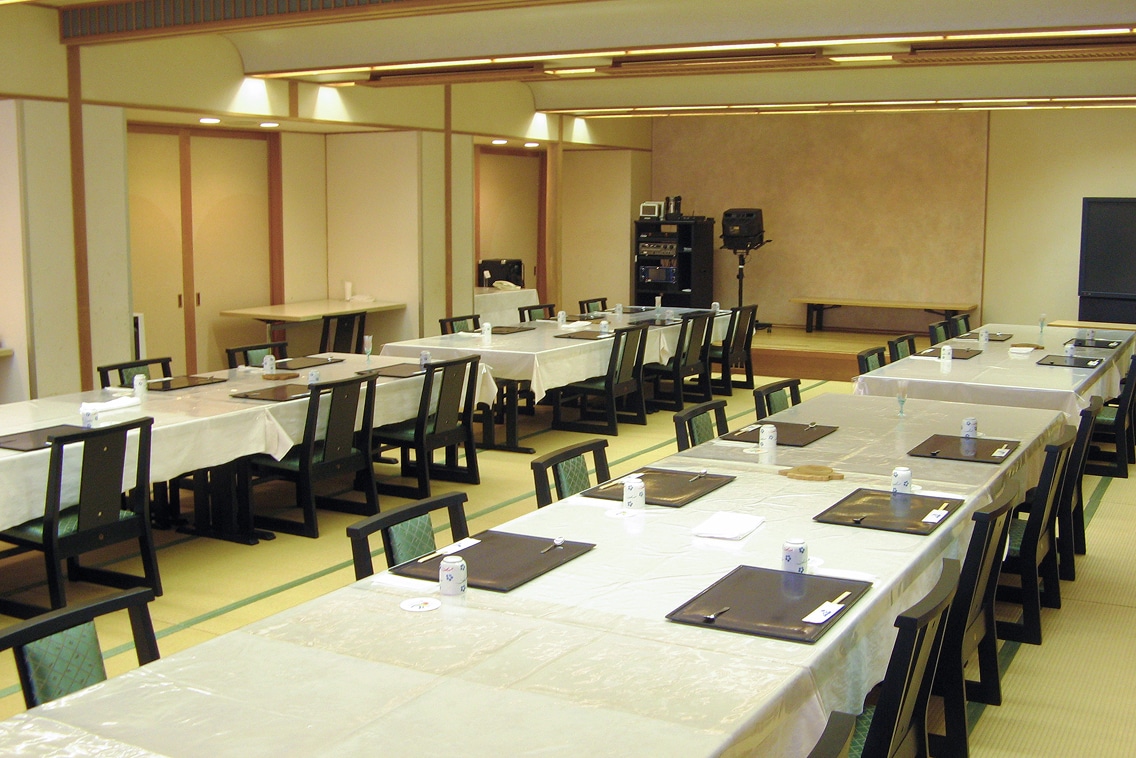 お食事や会議でご利用できる会場です。最大で70名の収容可能です。