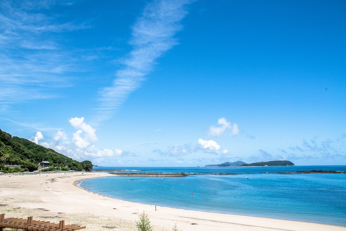 当ホテルから車で約20分の場所にある大砂(おおずな)海水浴場は、起伏に富んだ八つの坂と八つの浜からなる名勝「八坂八浜」のひとつとして知られています。白く美しい砂浜と透明度の高い海水を誇り、環境省が選定する「快水浴場100選」の特選にも選ばれた良質の海水浴場です。